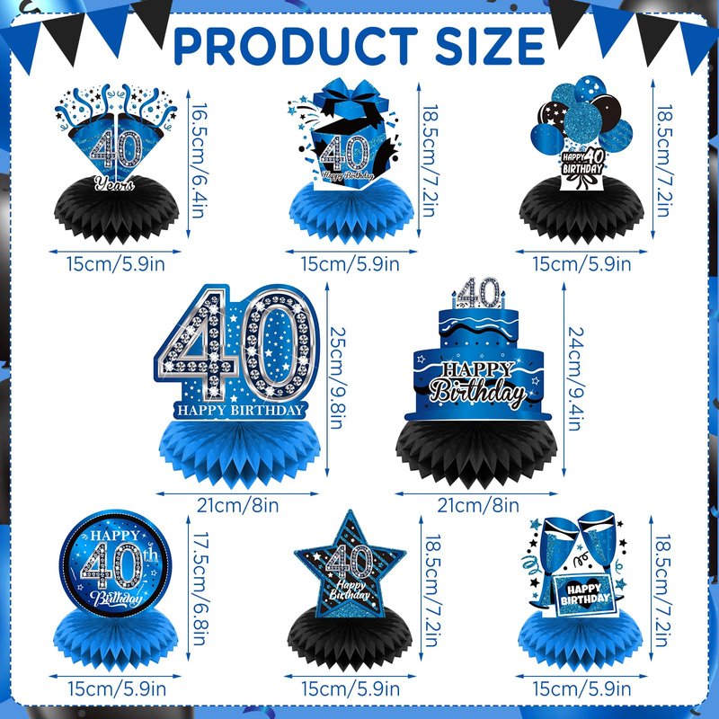 - 【Proper Size】 This black and blue happy 40th birthday table honeycomb centerpieces are designed in proper size, and the middle 2 are large enough to highlight the 40th birthday theme party, which is large enough to decorate 40th birthday party and take photos, make you and your friends more joyful to enjoy the party.