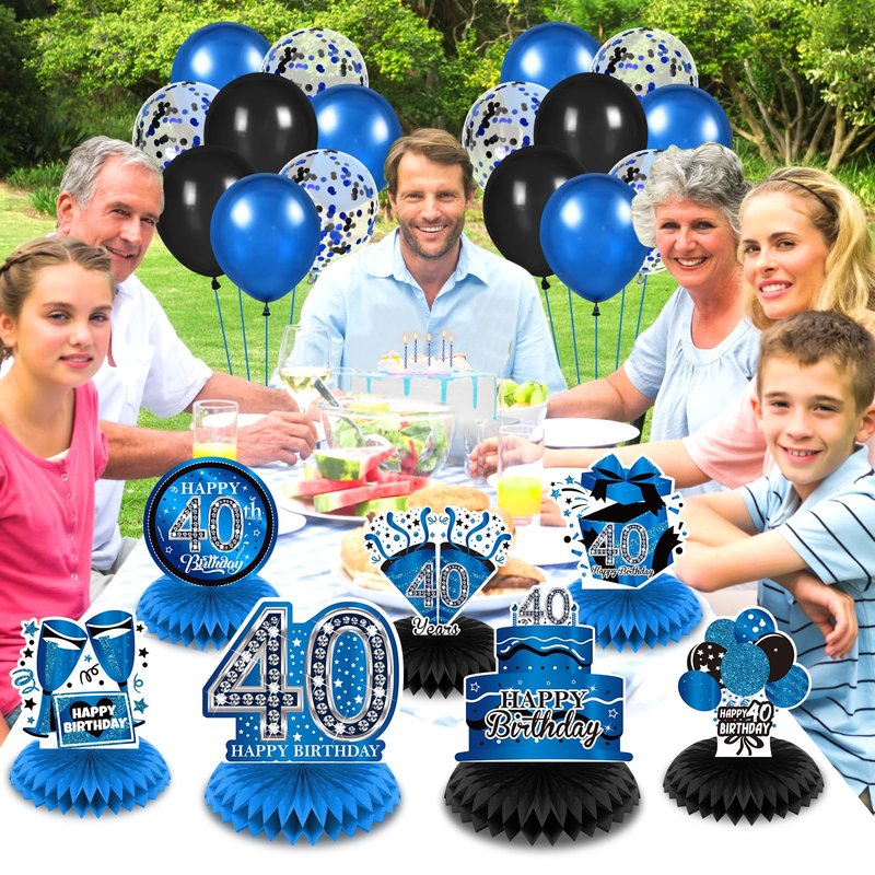 - 【Great 40th Birthday Party Supplies】 Elegant design with blue black and happy 40th birthday party elements, suitable for men and women, these cheers to 40 years table centerpieces, are great decorations for men and father's 40th birthday, the 40th anniversary party. It can leave your 40th birthday party impressive, suitable for indoor or outdoor use.