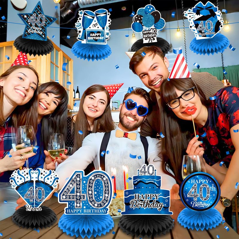- 【What You Will Get】 This package include 8 pieces of navy blue black happy 40th birthday honeycomb centerpieces in 8 different designs, combine blue and black with happy 40th birthday elements, suitable for men and women, accompany you and your family and friends to spend an unforgettable and warm 40th birthday party.