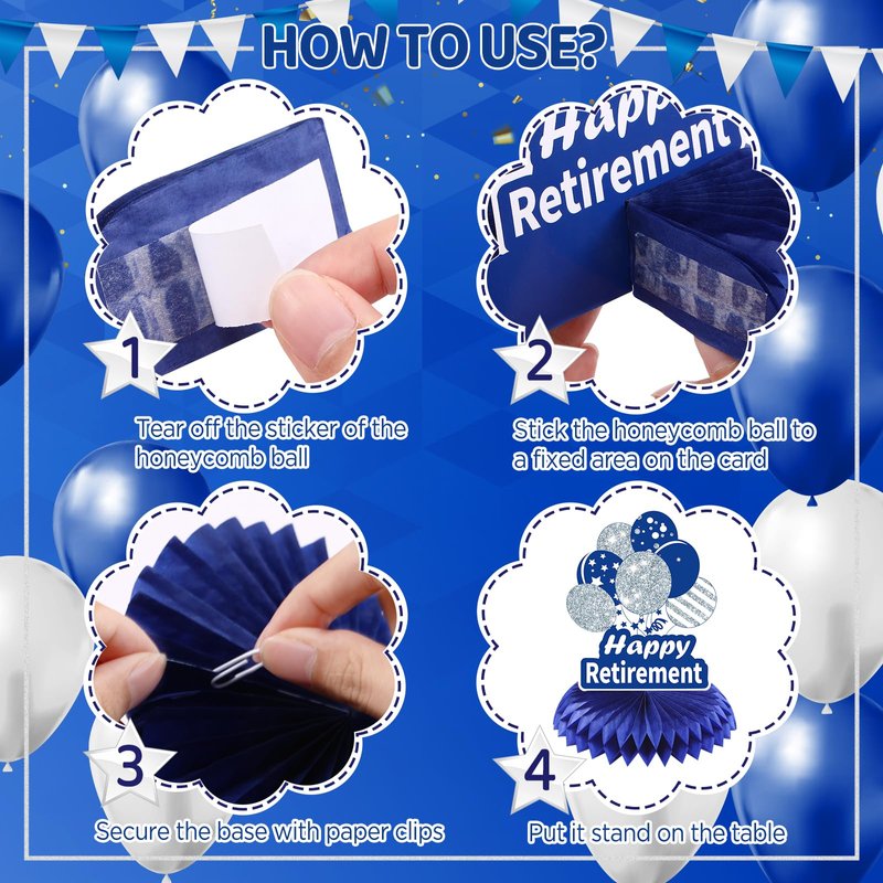 - Easy to Use: You just peel off the sticker and stick the honeycomb ball to the bottom of the navy blue silver 80th birthday sign, then gently unfold the honeycomb ball with your hand to get a full 80th birthday honeycomb for your 80th birthday anniversary party, very easy to use and save a lot of decorating time