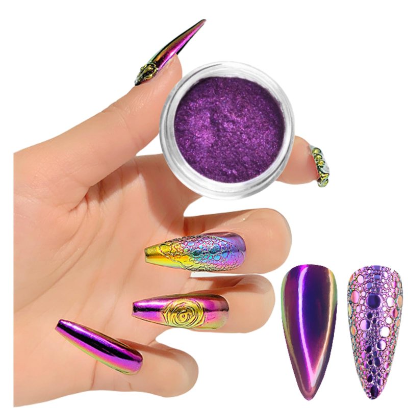 - 【WIDE APPLICATION】: The colorful nail powder is suitable to be applied on UV gel nails, acrylic nails, natural nails, etc, a helpful DIY tool for nail art design. Different polish will give different actual effects. Trying different polish can also bring more fun to you with the chameleon powder.