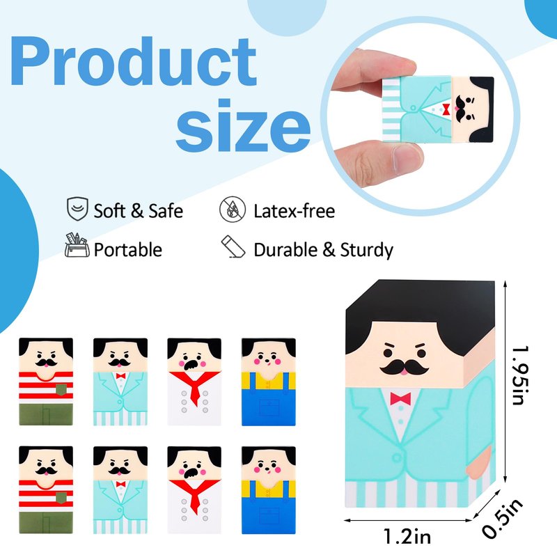 - 【Portable Size】The cute salaryman eraser are approx. 1.2 x 1.95 x 0.5 inches in size, easy to hold and control. You can put these bulk bald eraser in pencil boxes or even pockets and carry them with you.