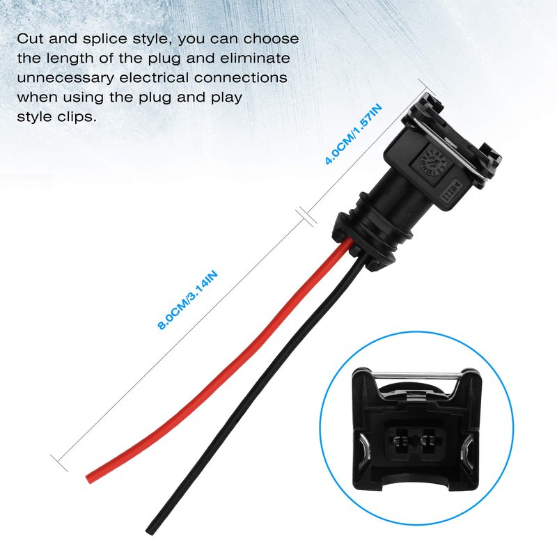 - Made with high quality plastic material. Designed to MEET or EXCEED standards of original factory Fuel Injector Connector Pigtail Wire. Guaranteed Exact Fit for PLUG & PLAY. Manufactured from quality materials, 100% tested before shipping.