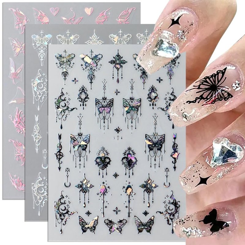 - √【Punk Butterfly Nail Stickers for Nail Art】There are 2 metal silver butterfly stickers and 2 metal black butterfly stickers in the set. They have a faint metallic texture, creating a strong punk atmosphere, making them look cool and mysterious, these personalized nail stickers are the great nail decoration for punk girls.