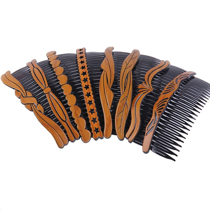Package Content: 8 x Plastic Wood Grain Hollow Hair Side Combs Retro Hair Comb Pin Clips Headdress with Teeth for Lady Women Girls Hair Styling Accessories