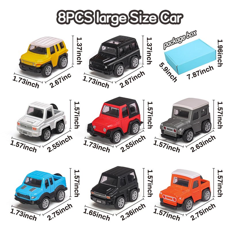 - 【Big Size】:The size of each cars for kids ages 3-5 is approximately 2.36-2.75 inches long and 1.37-1.96 high, which is Bigger than the size of small cars on the market.