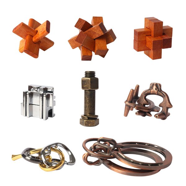 - Wooden and Metal Puzzles: 8 pieces of puzzles for adults and kids, helps with practicing concentration and focus, and provide you with educational entertainment.
