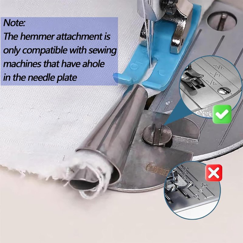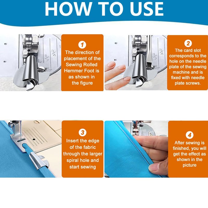 - 【Sewing Rolled Hemmer Foot】This hemming foot makes folding fabric edges and hemming projects a total breeze. It securely grips the fabric, making hemming projects easy and achieving flawless hems with precision every time