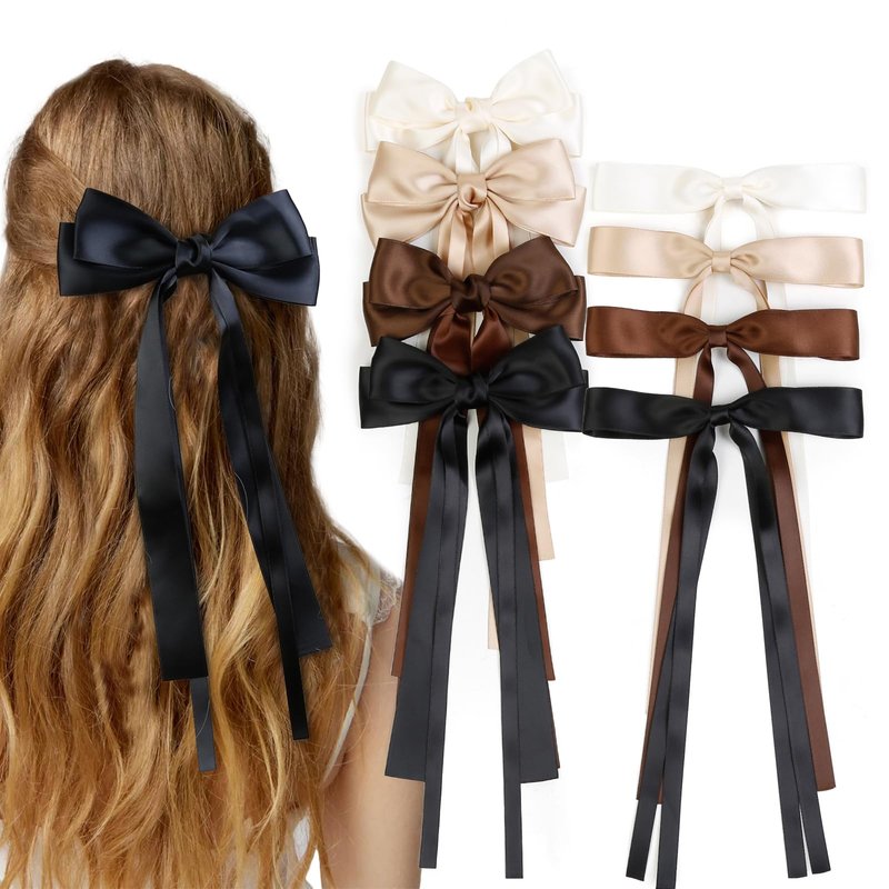 - 8PCS Hair Bows For Women: Comes in 8 long ribbon bow hair clips for women and girls with 4 different neutral colors, 2 types to choose from, which are suitable to match different styles of hairstyles and can also match your various outfits or festive costumes at will.