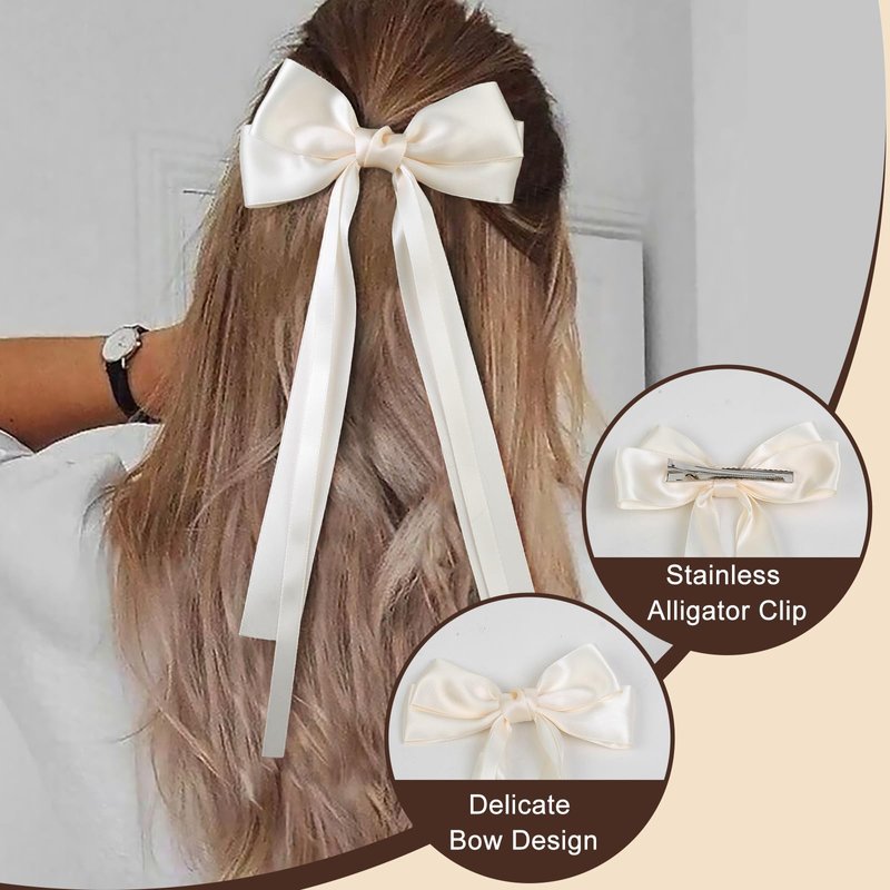 - Premium Satin Bow Hair Clips: Our hair bows clips are made of high-quality silky satin fabric and alligator clip, soft and smooth, comfortable to wear. While making you look more elegant, they are not only much easier to put in your hair, but also hold the hair firmly, not easy to pull down your hair or hurt the scalp, no matter thick, thin, curly hair, braids, ponytail or half updo.
