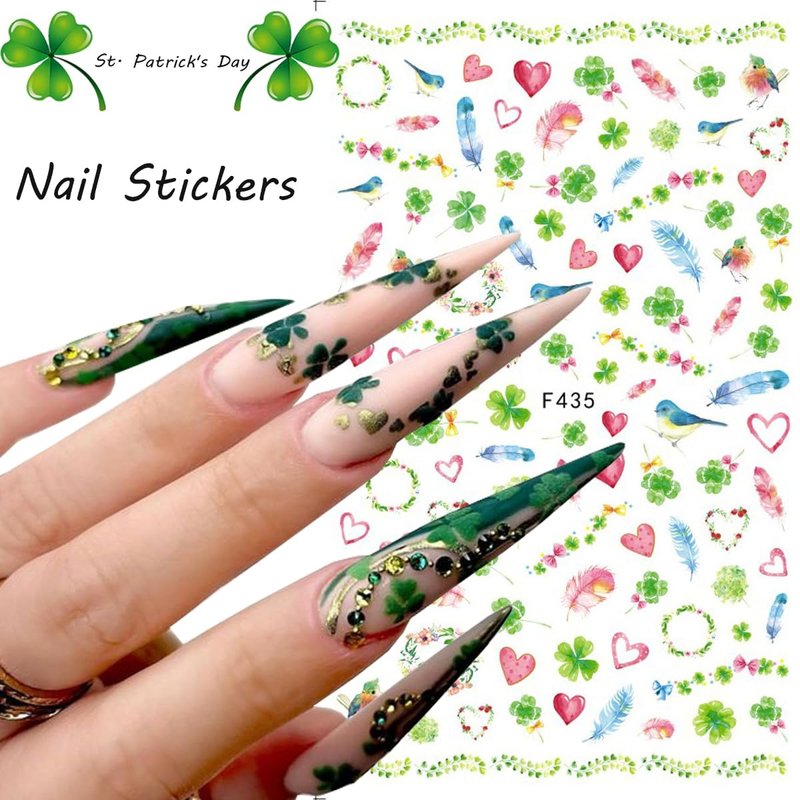 - ☘️3D Nail Stickers for Nail Art: These St. Patrick's Day shamrock nail stickers can be used to decorate most nails such as natural fingernails, gel nails, acrylic nails, fake nails and so on, perfect for home use or professional nail salons.