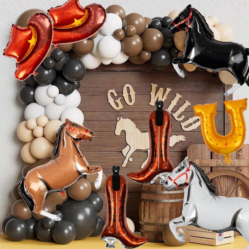 - Authentic Western Atmosphere: Saddle up and get ready for a western horse party with our cowboy themed balloons set! Whether you're a cowboy or a cowgirl at heart, western themed party decor balloons will bring the spirit of the wild wild west to life. From rustic decorations and cowboy hats/boots to line dancing and hearty BBQ, it's all about embracing the rugged charm and adventure of the frontier
