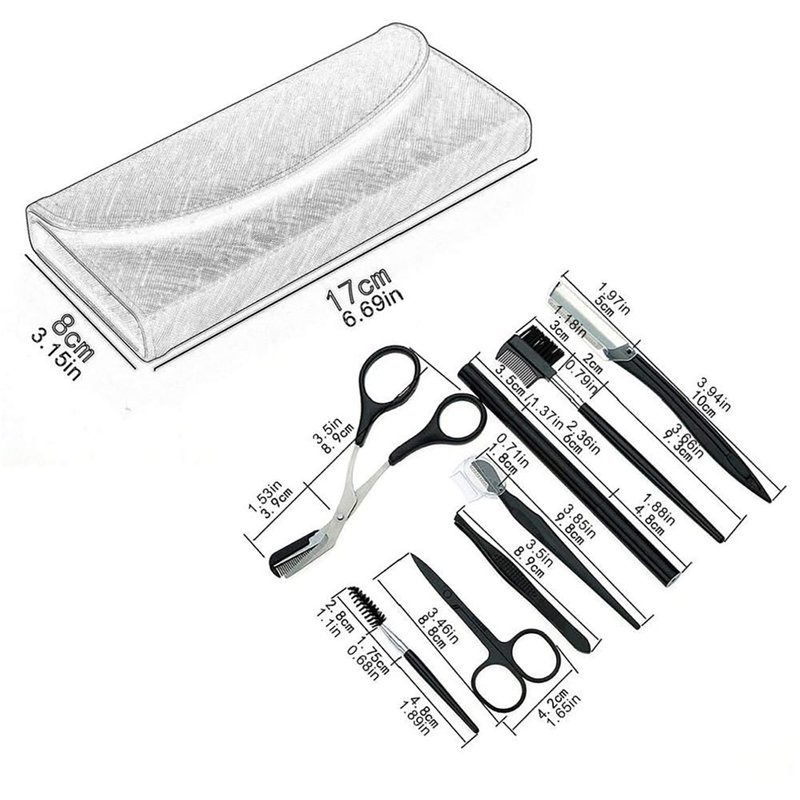 - Complete set - 2 eyebrow shavers, 1 eyebrow pencil, 1 eyebrow brush, 1 eyebrow brush, 1 eyebrow comb, 1 tweezers, 1 scissors, 1 bending thinning scissors. Create the perfect arch with our eyebrow covers. We include all the tools you need to clean, fill, define and shape your eyebrows to meet your various eyebrow trimming needs.