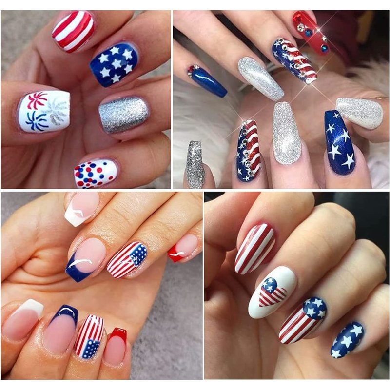 - 🗽Simple and Convenient: our nail stickers are self-adhesive; Our stickers don't need moisture transfer, so just stick them on your nails, which is simple and time-saving,perfect for you to decorate your nails on 4th of July.