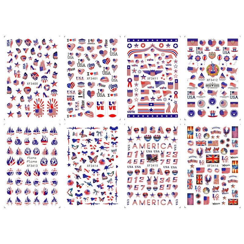 - 🗽4th of July DIY Nail Decoration: You will get 8 sheets 4th of July nail art stickers, super cute and easy to use! can be used to decoration your own nail art, nail designs.