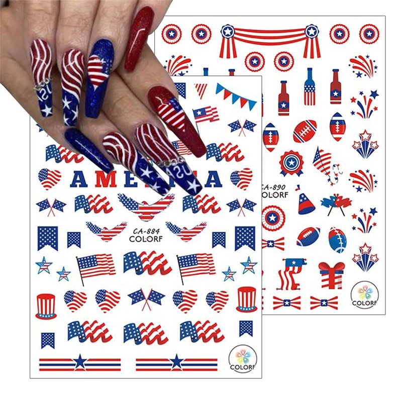 - Occasion: USA nail stickers are the best gift for your female friends, your daughter, your wife. Independence Day theme nail art supplies are great for your fingernails and toenails decorations. Perfect for home use and nail salon.