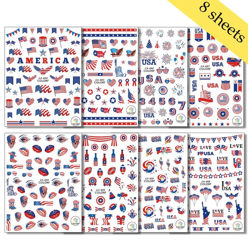 - 4th of July Nail Stickers: You will get 8 sheets classic Independence Day nail art stickers, 4th of July nail decals are abundant in quantity, with over 200 pcs patterns for you to choose from. Perfect for creating your unique 4th of july nail decoration!