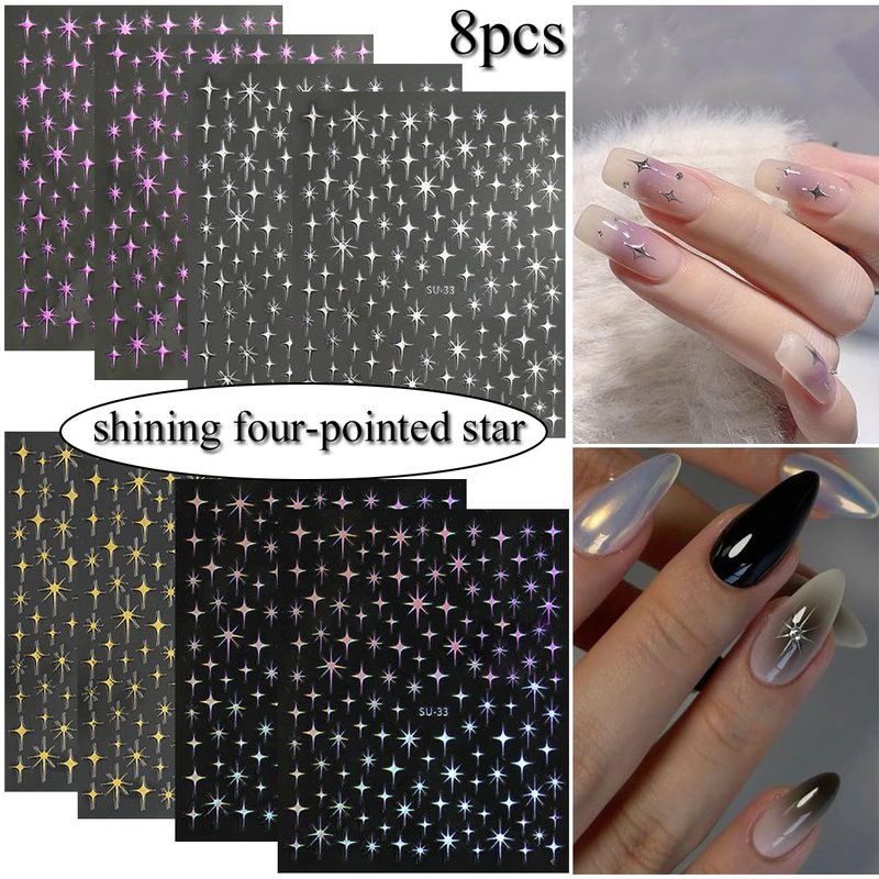 - Fashion Stars Stickers Set :You will get 8 sheets glitter star theme star nail art stickers , star nail decals are the perfect fashion accessories.Large number of different patterns for you to use and replace in daily life,cute nail stickers are full of sensuality and elegance, Various charming patterns bring you a different mood.