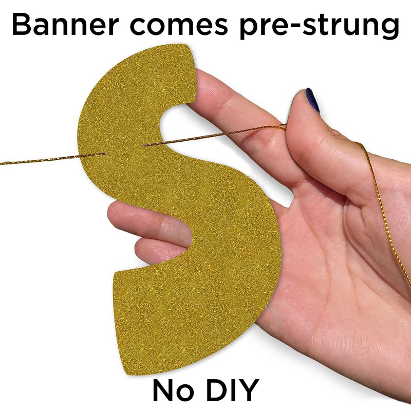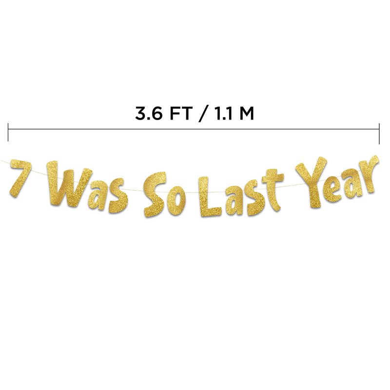 - Congrats on the big 8! This gold glitter banner is the perfect decoration to add a touch of classy decor and welcome your guests to the occasion.