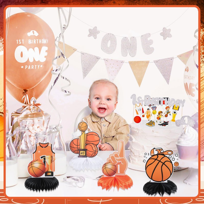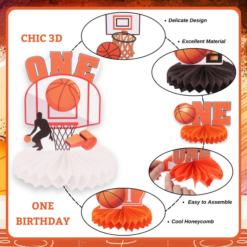- Delicate First Birthday Favors: Celebrate your little one's first year with our one birthday basketball honeycomb centerpieces, featuring ONE Letters, number 1, basketball patterns, basketball field elements and so on, which will create a memorable atmosphere for first birthday or first year to hold a basketball theme birthday for your baby