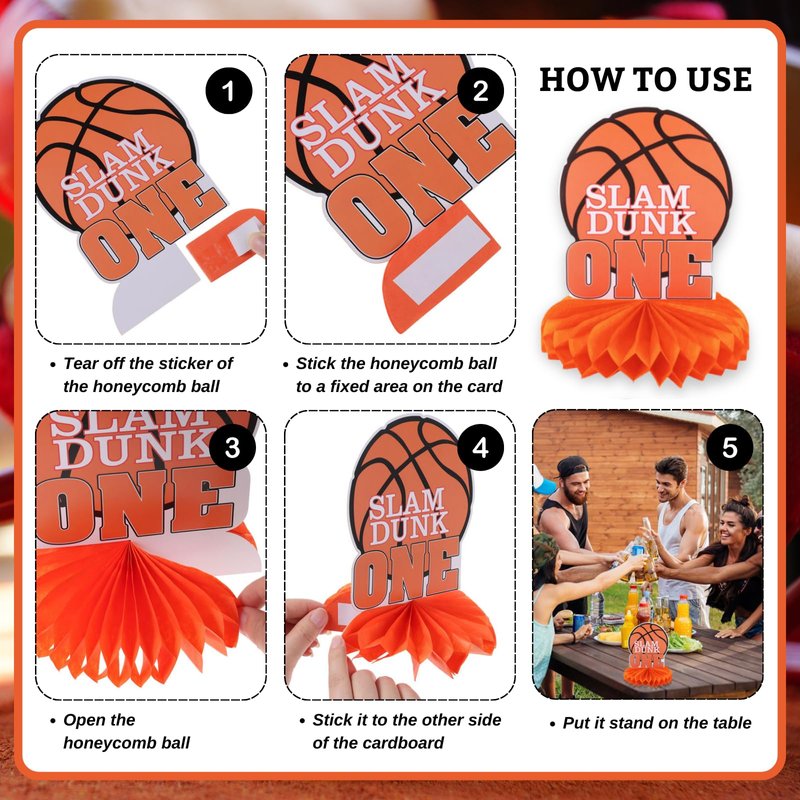 - Chic Basketball Party Touch: These basketball honeycomb centerpieces are perfect for adding an active touch to any basketball -themed celebration. With their vibrant colors and unique first year basketball design, they are sure to be a hit with both kids and adults alike, which will create a memorable atmosphere for first year to celebrate basketball birthday or first year to hold a basketball party
