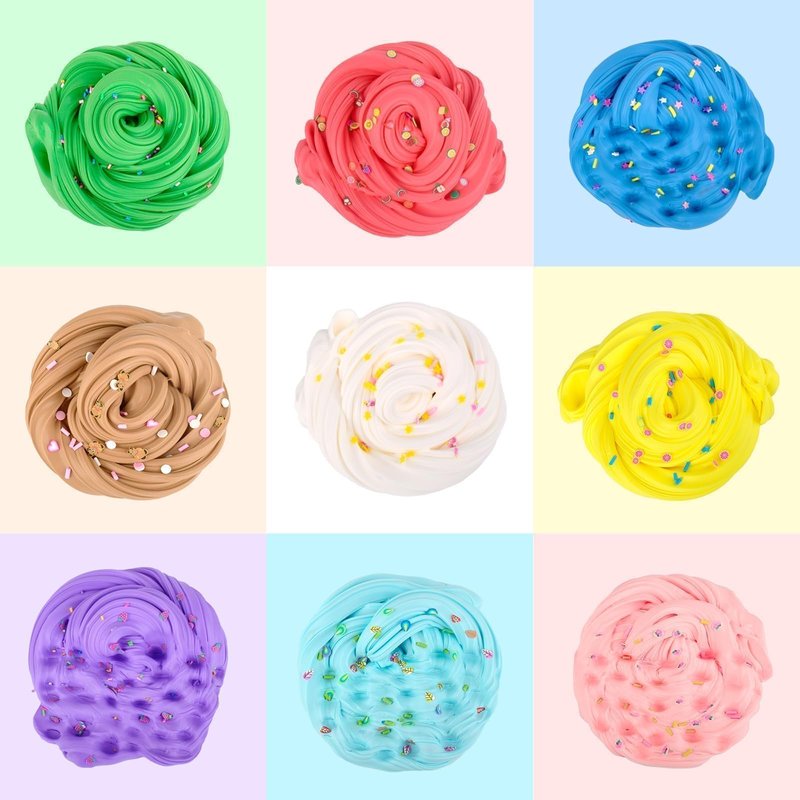 - Slime Pack: The slime kit includes 9 packs of slime, 9 colors, 2 packs of slime for each color, 9 slime charms