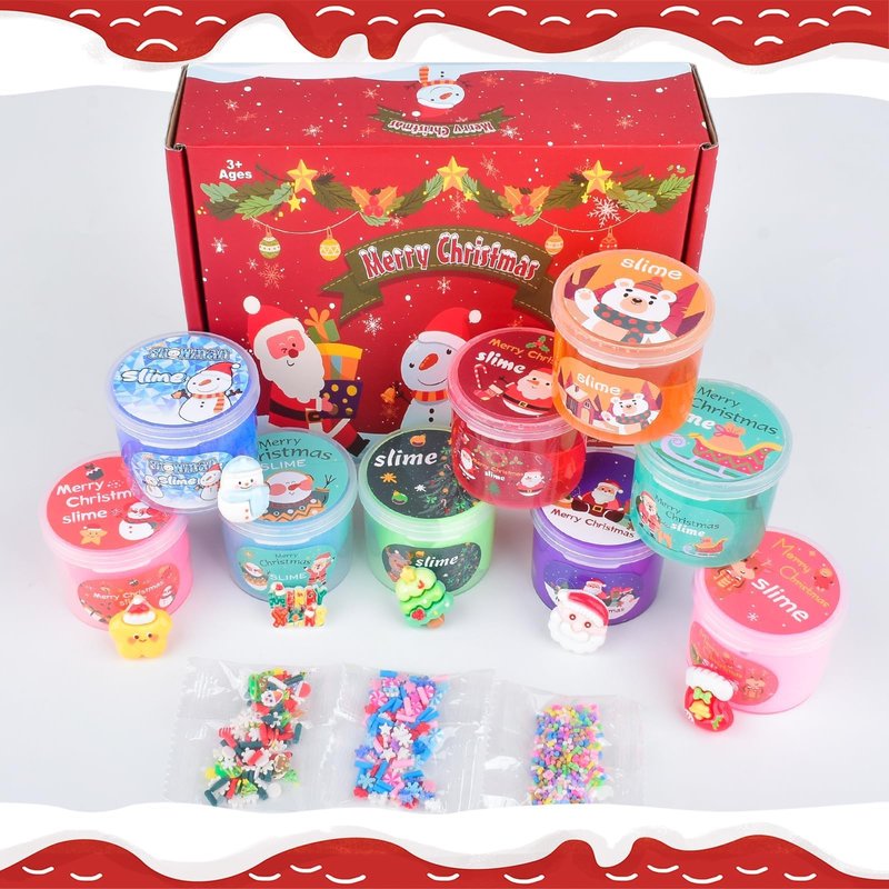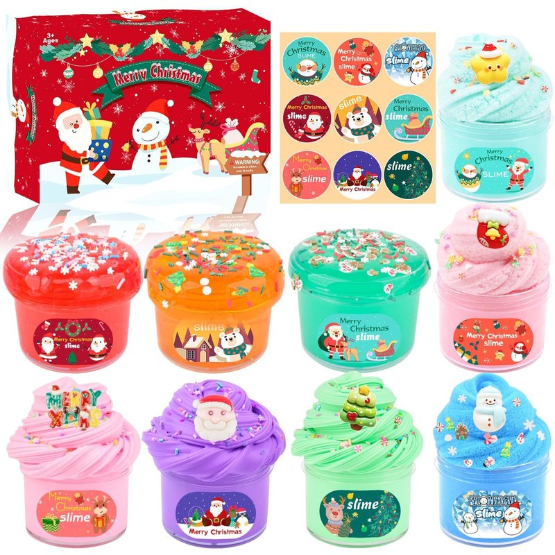- Christmas 9 Pack Slime Party Favors: Crystal slime is soft and crunchy, not sticky, and has a refreshingly cool feel when you hold it in your hand. Cloud Slime is soft like a cloud, Butter Slime has a soft and tough texture, you can pinch, pull and roll it, Play your unique slime!