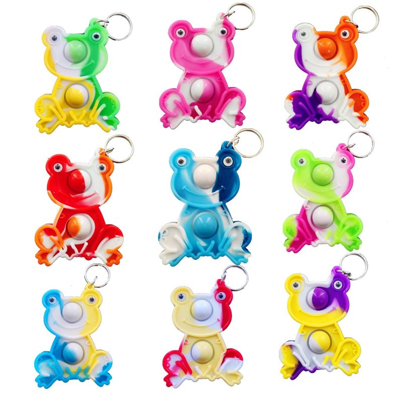 - 2,Made of silicone,package included:9 Packs Frogs mini pop shape key chains,Random color to send