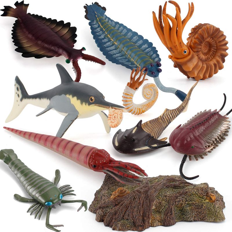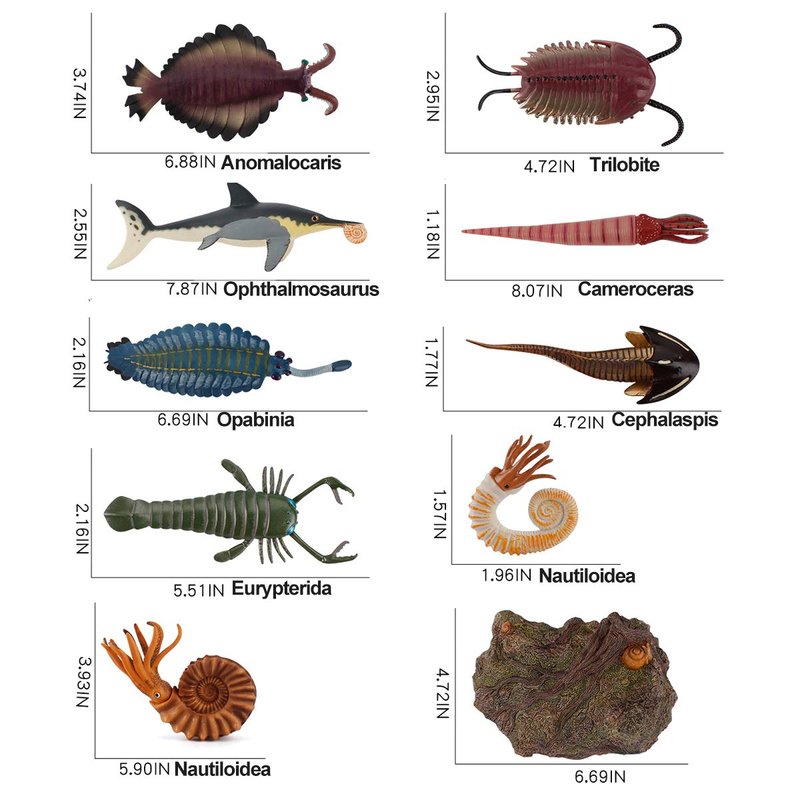 Item include: 1 * Opabinia, 1 *Anomalocaris, 1 * Ophthalmosaurus, 1 * Cephalaspis, 1 * Trilobite, 1 * Eurypterida, 1 * Cameroceras, 2 * Nautiloidea, 1 * Tree Stump.