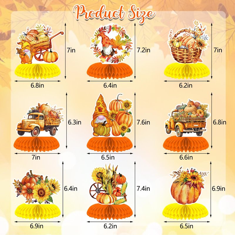 - Fall Honeycomb Centerpieces-Package includes 9 pieces of Thanksgiving honeycomb Centerpieces, 9 different styles, creative design to attract people's eyes