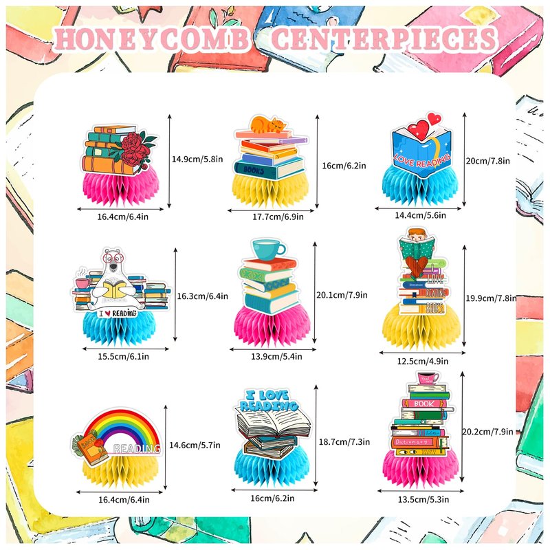 - Unique Design: Our books honeycomb centerpieces adopts rich books pattern elements, beautiful and interesting, creating a strong party atmosphere. The bright colors and high-quality printing make the party decoration look more in line with the theme party, and it will definitely be welcomed by everyone.