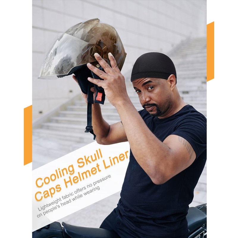 9 Pcs Cooling Skull Cap Camo Liner Sweat Wicking Cap Lightweight Cycling Cap Running Head Cap for Men Women (Black)