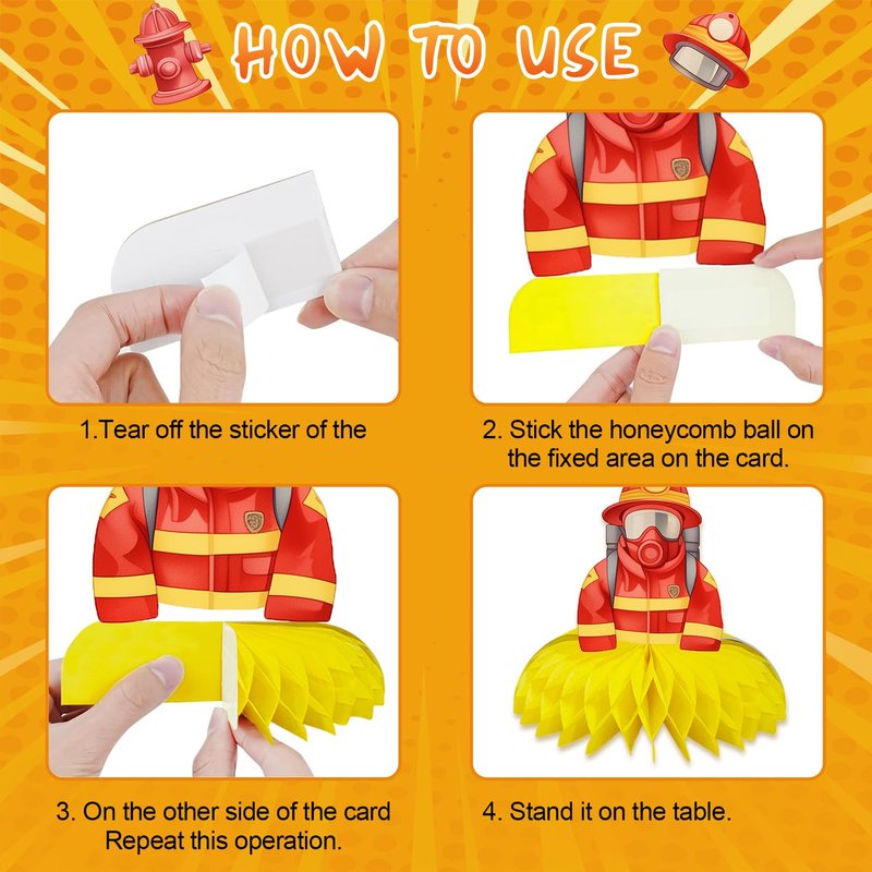 - Easy to Assemble: The firefighter birthday decorations are simple to assemble. Peel off the double-sided tape, unfold the honeycomb base, and paste them together. Then you get a beautiful firetruck party decor. These fireman birthday party supplies make your fire decorations party cheerful and fun.