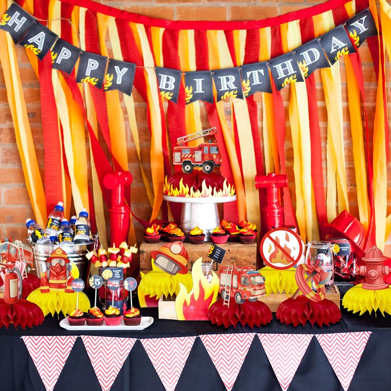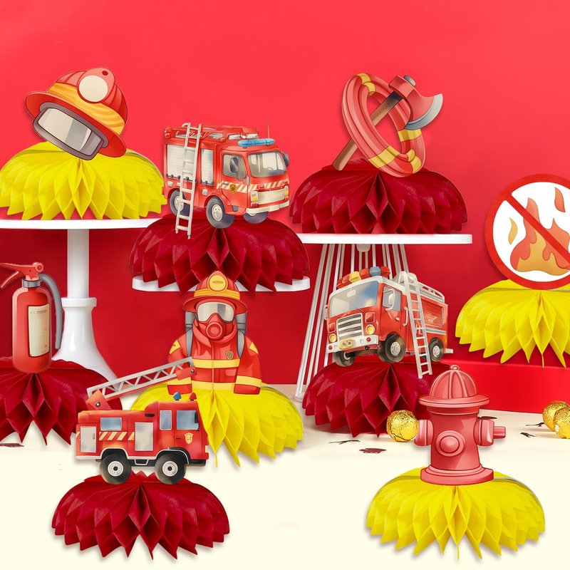 Fire truck party supplies: The fire fighter decoration not only look cute but also make them perfect for The fire fighter decoration not only look cute but also make them perfect for fire department party. Firefighting decorations can be used as fire hydrant party decor, fire truck baby shower decorations, fire fighter party decoration, and firefighter decoration.