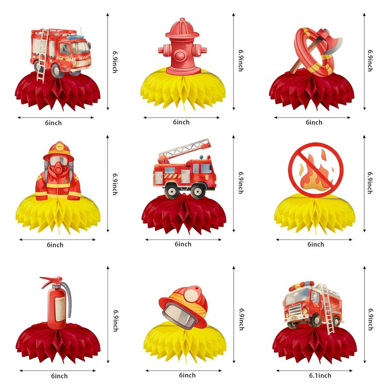 - Fire Decorations: You will get 9 pieces of firefighter party decorations. These firefighter party favors are perfect for hosting a fire truck theme or decorating a firetruck birthday party.