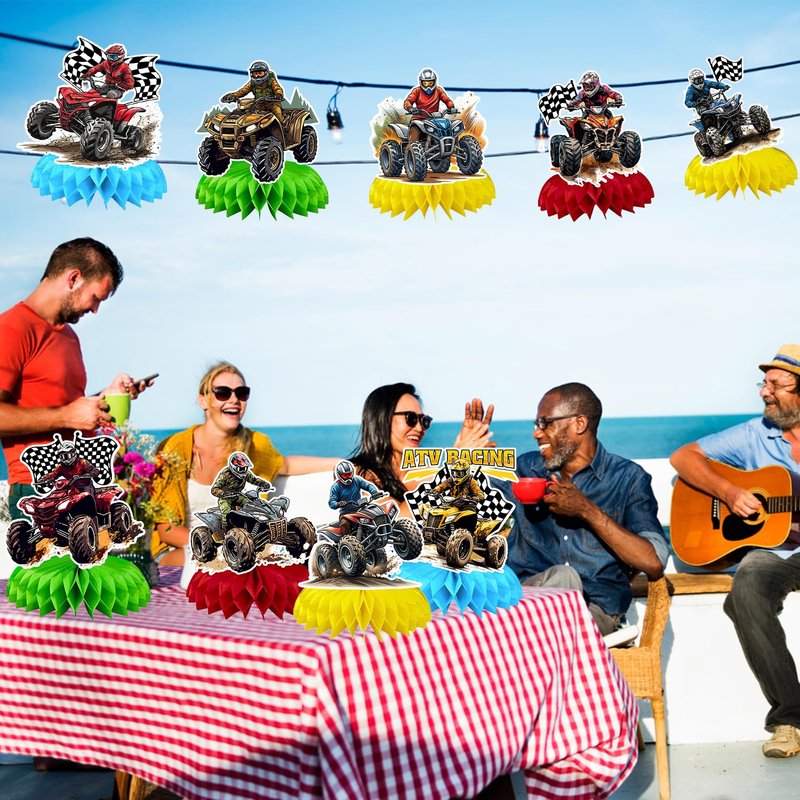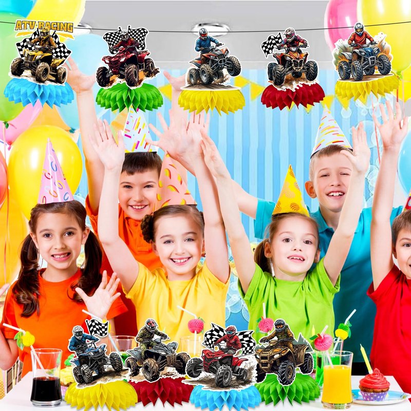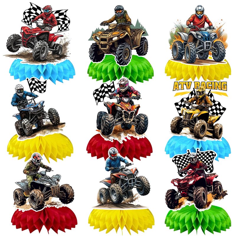 - Package Include: Our ATV party decorations include 9 pcs ATV honeycomb centerpieces in 9 different styles. Brace yourself for a ton of compliments, your guests will love the unique design on the ATV table decorations
