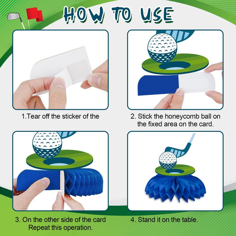 - Easy to Assemble: The golf themed birthday decorations are simple to assemble. Peel off the double-sided tape, unfold the honeycomb base, and paste them together. These golf decorations for party centerpieces make your party cheerful and fun.