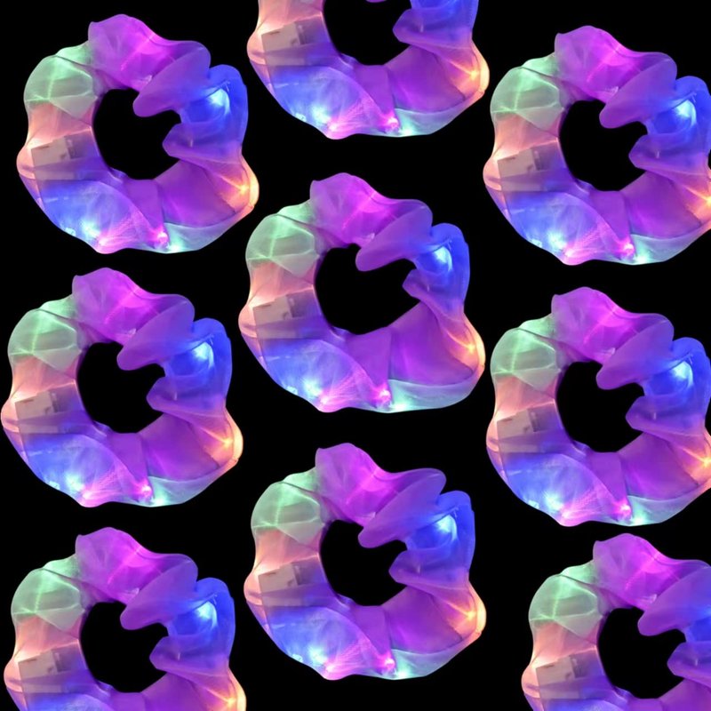 - Premium Material: These light up hair scrunchies are made of gauze fabric, smooth surface does not hurt the hair, and the sense of perspective is very good, can perfectly show the colorful led light,they will be wonferfull glow in the dark hair accessories and rave party supplies.