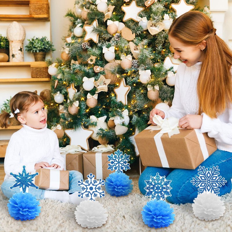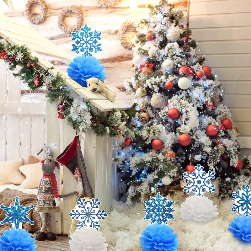 - Nice princess party decorations: the package contains 9 pieces Christmas snowflakes centerpieces for tables; The clusters of the flower look like wave of the sea, cute Christmas snowflakes card topping on the flower seems like swimming in the sea, what a charming and attractive scene; Beautiful supplies for most Christmas snowflakes theme parties