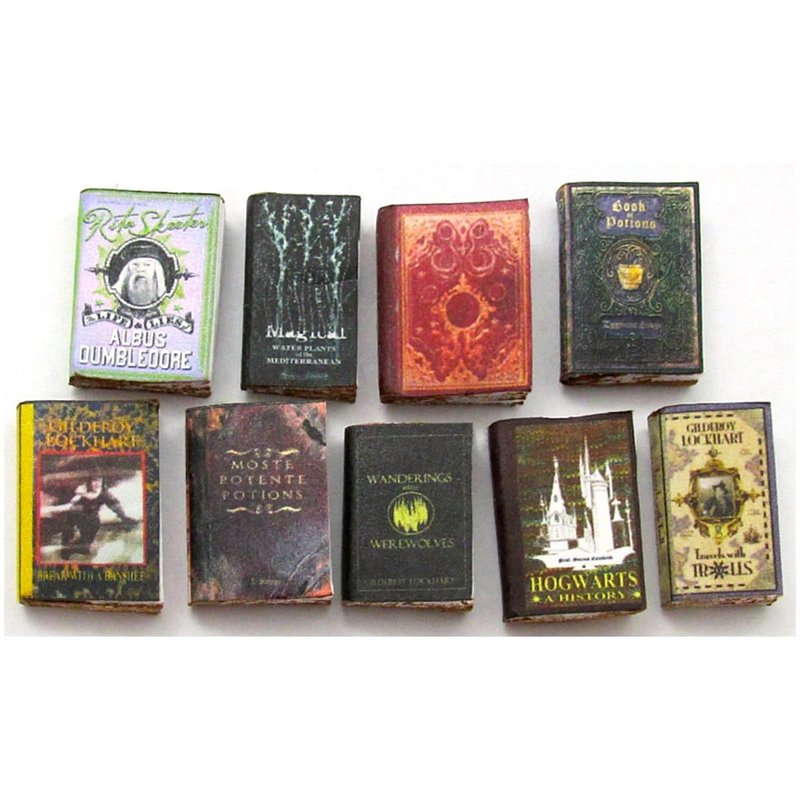 9 Pcs Miniature Books Dollhouse Accessories Popular Boy Wizard Magic School of Witchcraft And Wizardry Textbooks Prop Books Miniature Dollhouse 1:12 Scale Faux Books By Little Things of Interest