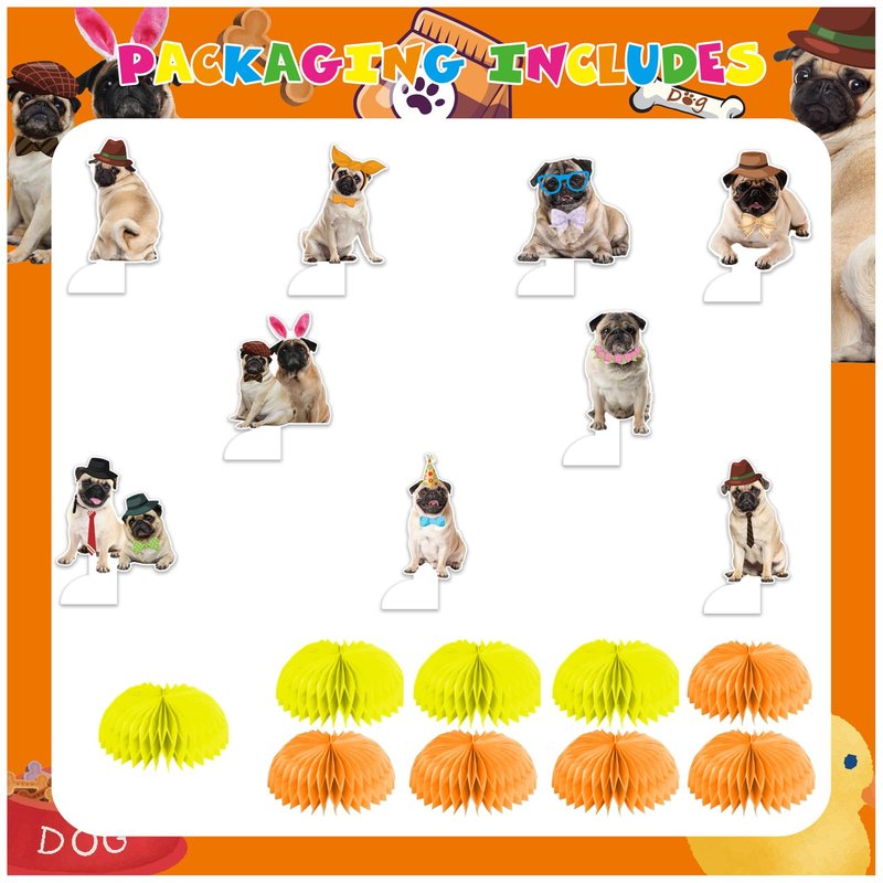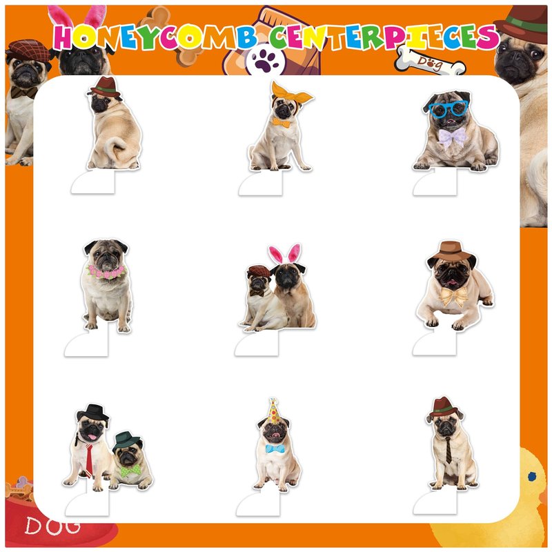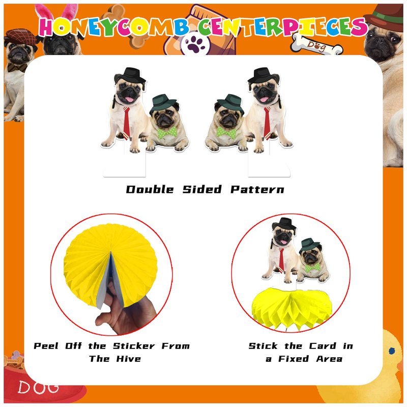 - Unique Design: Our pug honeycomb centerpieces adopts cute pug dog pattern elements, cute and interesting, creating a strong party atmosphere. The bright colors and high-quality printing make the party decoration look more in line with the theme party, and it will definitely be welcomed by everyone.