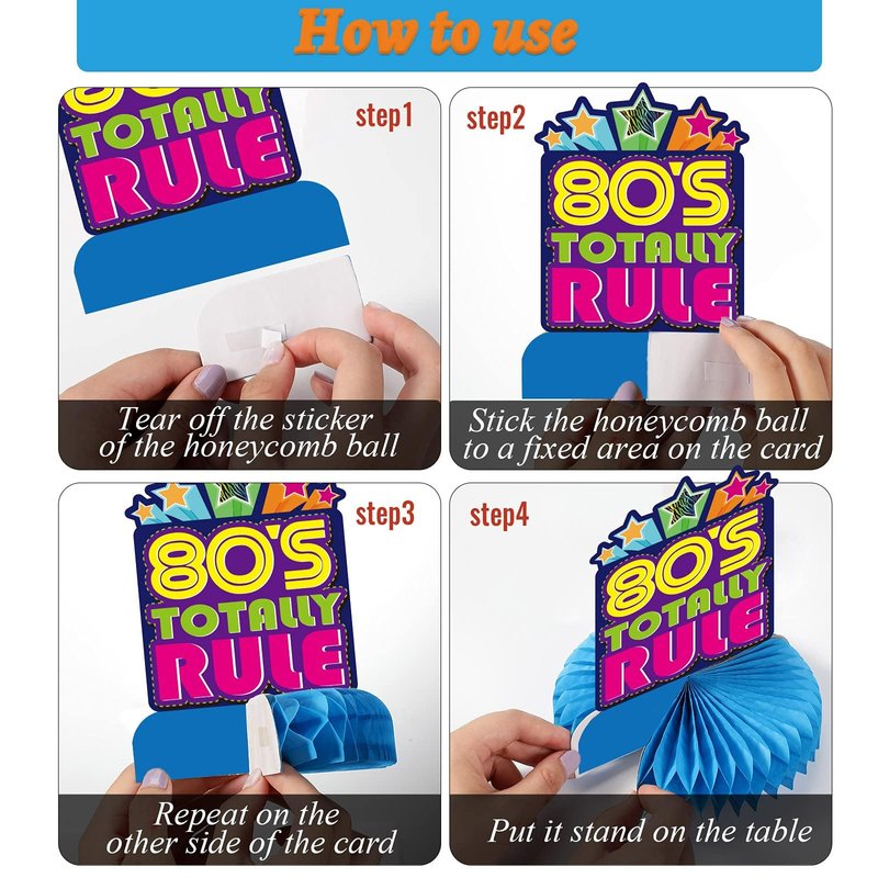 - How to use: Step1, tear off the sticker of the honeycomb ball. Step 2, stick the honeycomb ball to a fixed area on the card. Step 3, repeat on the other side of the card. Step 4,finally put it stand on the table. It's so easy that you can save a lot of time .