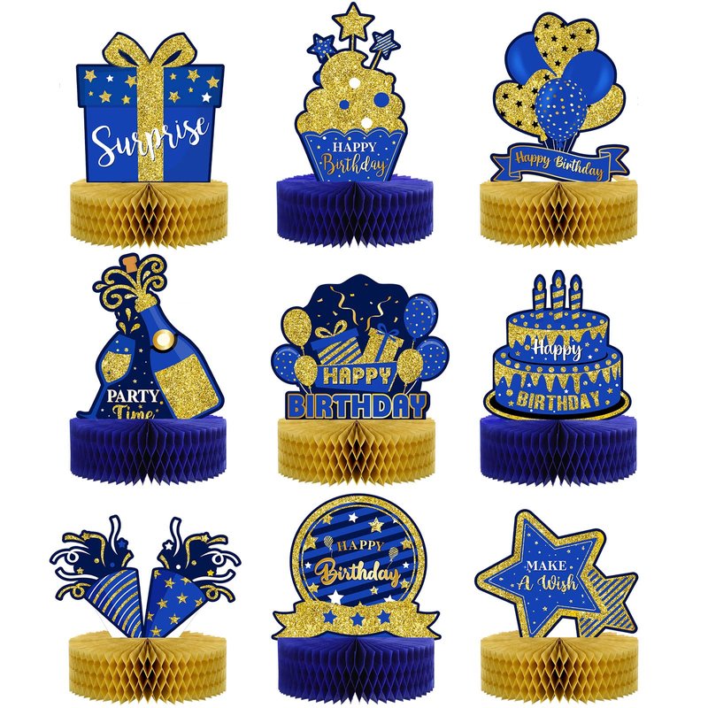 - What You Will Get: you will get 9 pieces delicate centerpiece table decorations in different patterns including the happy birthday theme, which can satisfy your various parties needs, and theses honeycomb decorations can be attractive in your party