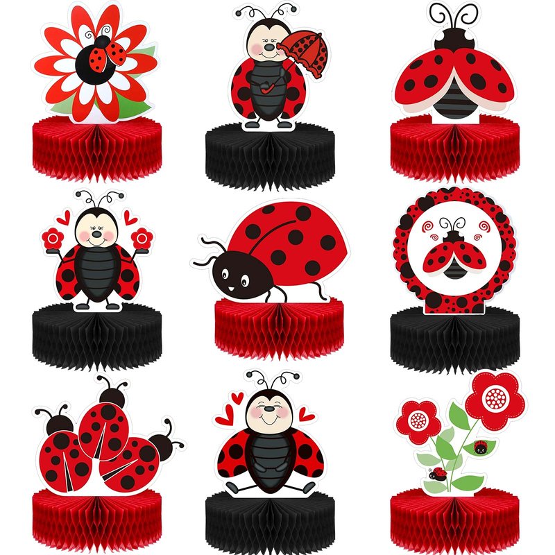 9 Pieces Ladybug Party Decorations Supplies Ladybug Table Decorations Honeycomb Centerpieces Birthday Party Cake Decorations Creative Fancy Ball Table Topper Ladybug Paper for Baby Shower Supply