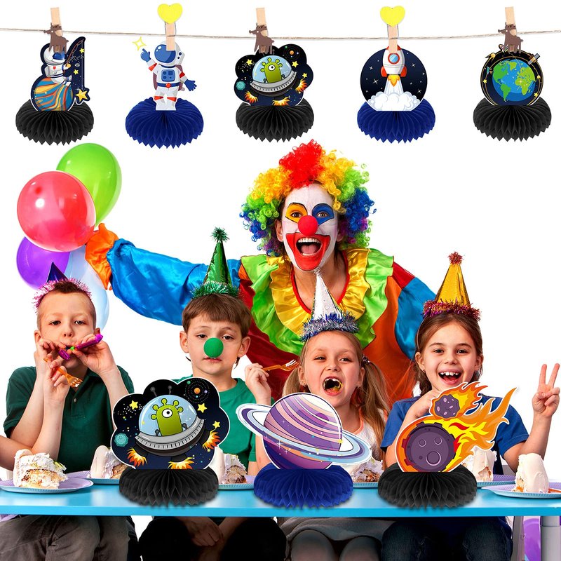 - Package content: you will get 9 pieces outer space theme honeycomb centerpieces in different styles, inluding astronaut, spaceship, rocket, planet, UFO, and so on, save your and family boring time and add a colorful display for your party table decorations