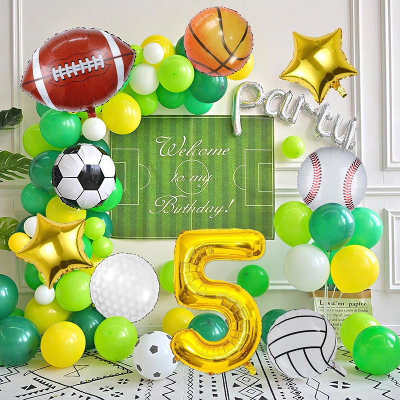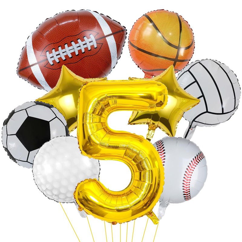 - Package Included: 1PC Football, basketball, baseball, volleyball, golf and soccer foil balloons, 2pcs18’’ gold star balloons, 1pc 40 inch gold number balloon. Totally 9PCS. Perfect for a sport theme party.