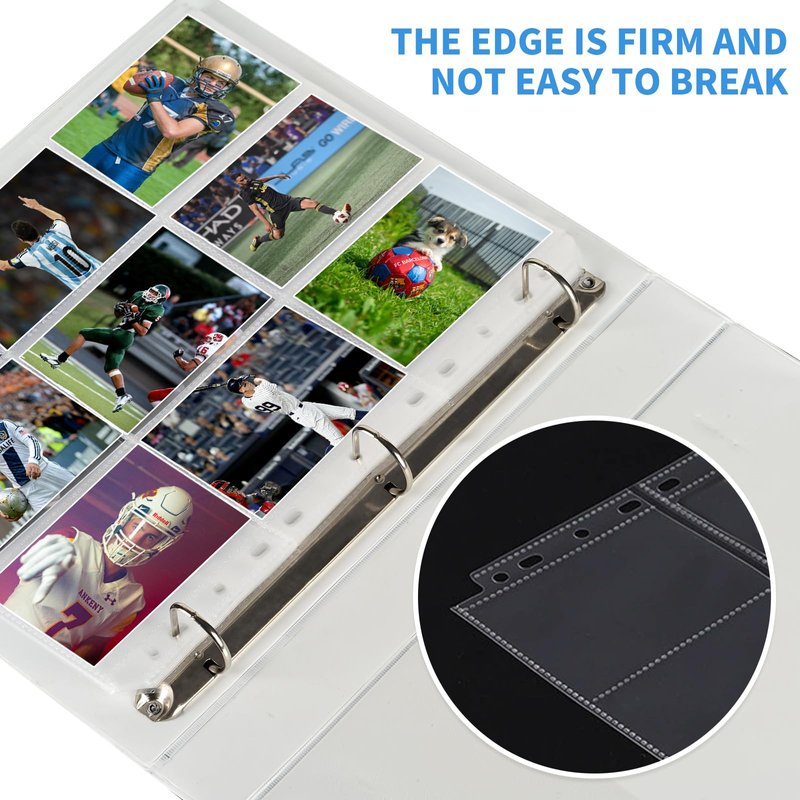 - 【HIGH QUALITY THICKENED MATERIAL】Card Binder Sleeves are made of clear polypropylene, non-PVC polypropylene, non-acidic, non-toxic, reinforced heat-sealed joints, and the thickened material is durable, ensuring that you can keep the visibility and security of the content when storing the card.