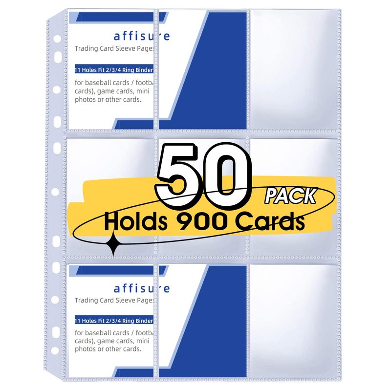 9 Pocket Card Sleeves ,Holds 900 Cards ,Trading Card Binder Sleeves,High Quality Thickened,Card Binder Sleeves, 3 Ring 9 Pocket Pages for Sports Cards, Coupons, Game Cards,50 Pack