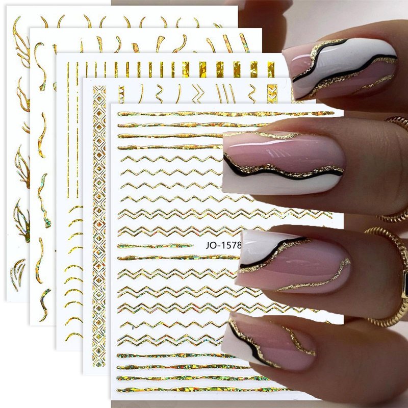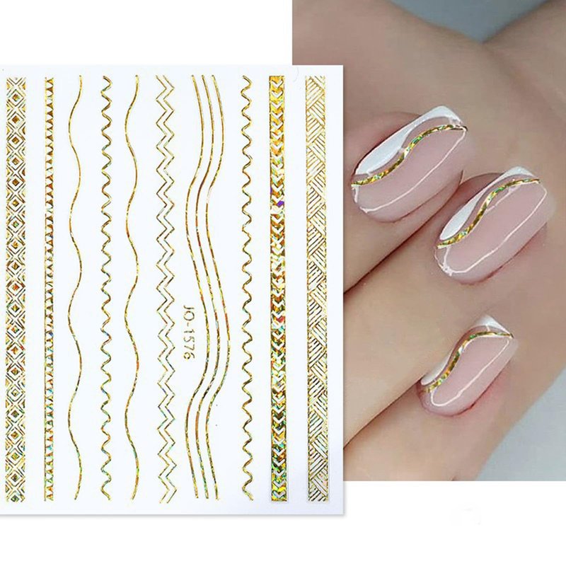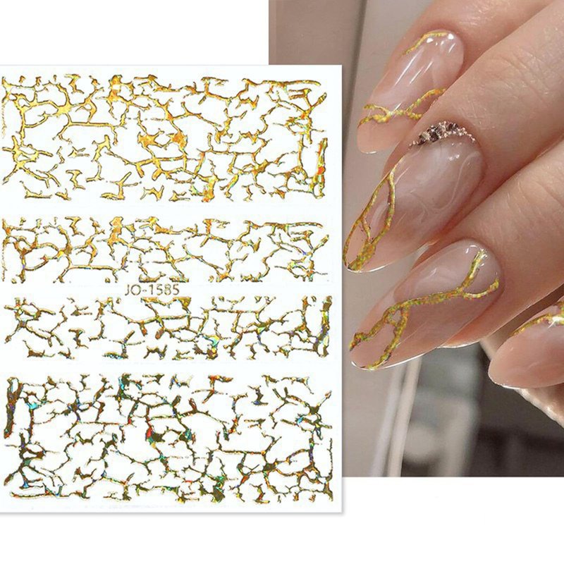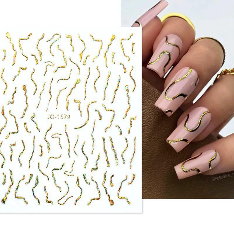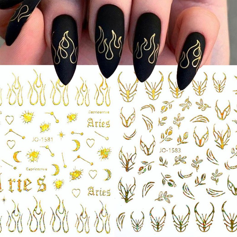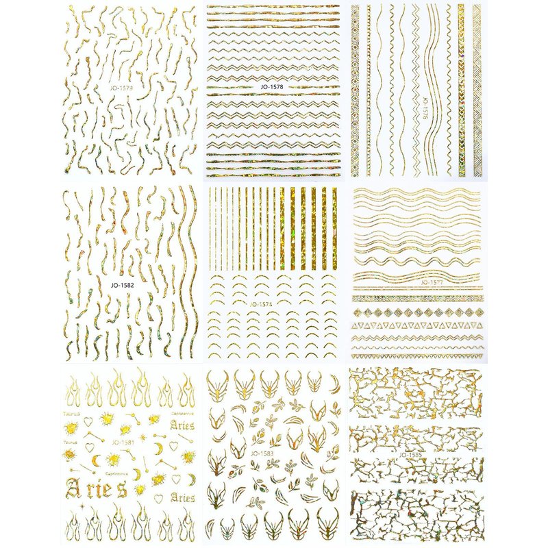 - 【Perfect Set】You will get 9 sheets gold nail art stickers fashion accessories in different designs. You can choose different patterns to decorate your nails, create a variety of dazzling 3D aurora nail designs.