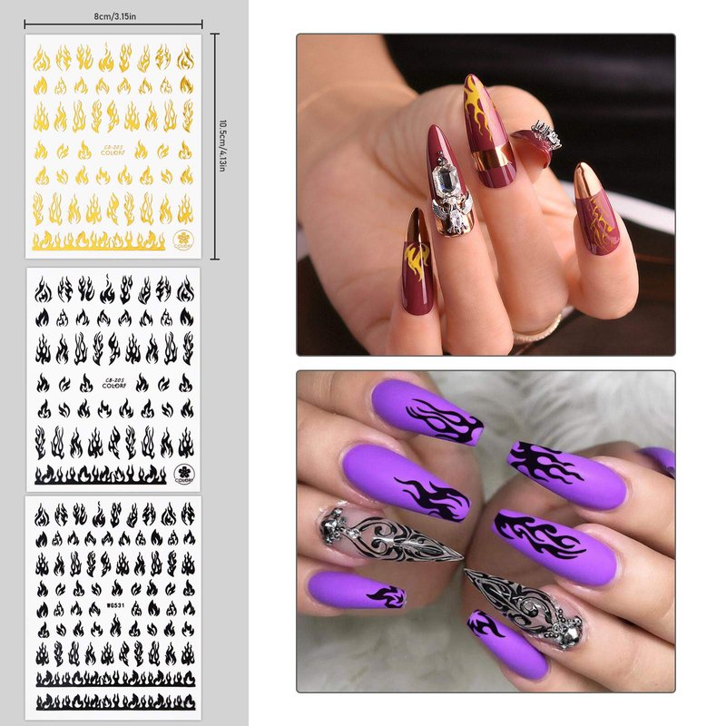 - 【Long Time on Your Nails】Our nails supply flame stickers can last for a long time and keep their luster at the same time if you paste them in correct way. If you want the sticker keep a long time, you need to apply the top coat on your nail to protect the sticker.